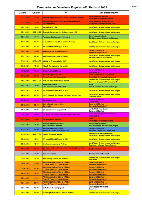 Veranstaltungstermine in Engelschoff/Neuland | Aktuelle Nachrichten und Informationen